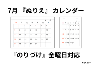 このカレンダーは「6月1日が何曜日か」に応じて、月曜〜日曜はじまりの7種類をご用意しています。