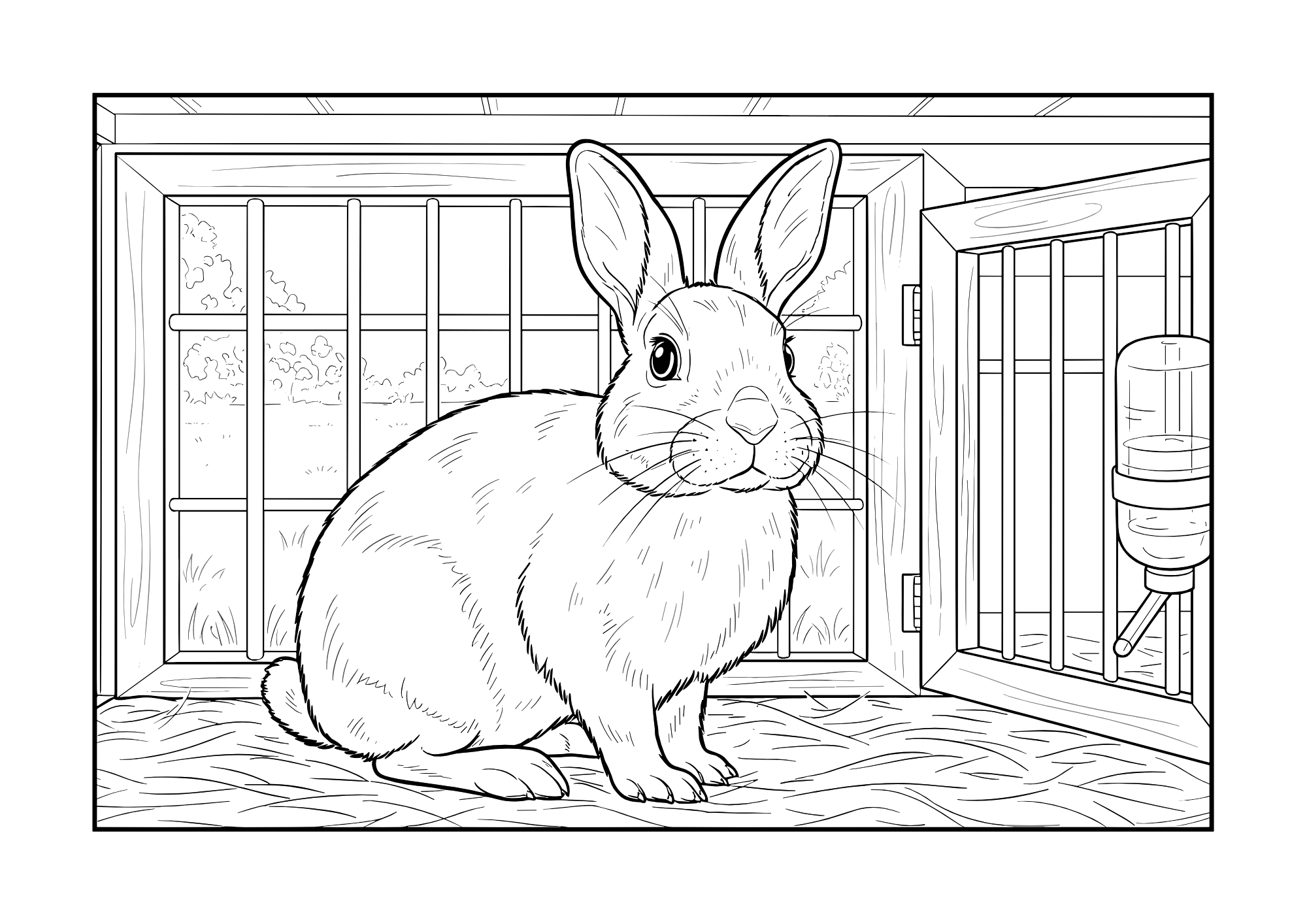 簡単・リアル・かわいいうさぎのぬりえ素材をご紹介します。今回はゲージの中でこちらを見つめるうさぎが主役。高齢者向けに線を太めに調整しており、ぬり絵初心者の方にもやさしい構成です。ちぎり絵や貼り絵の素材としてもおすすめです。