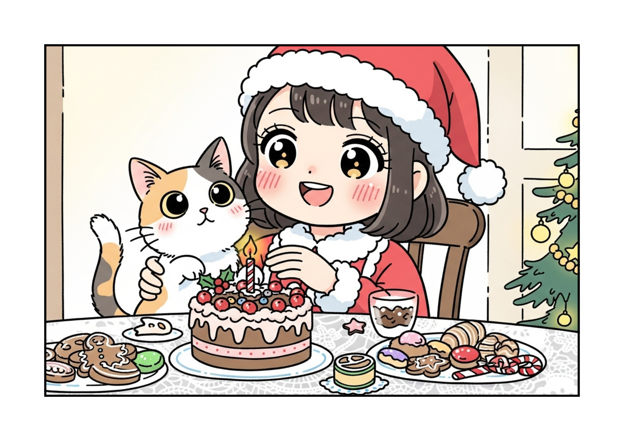 • モチーフ: 女の子・猫・クリスマスケーキ・お菓子