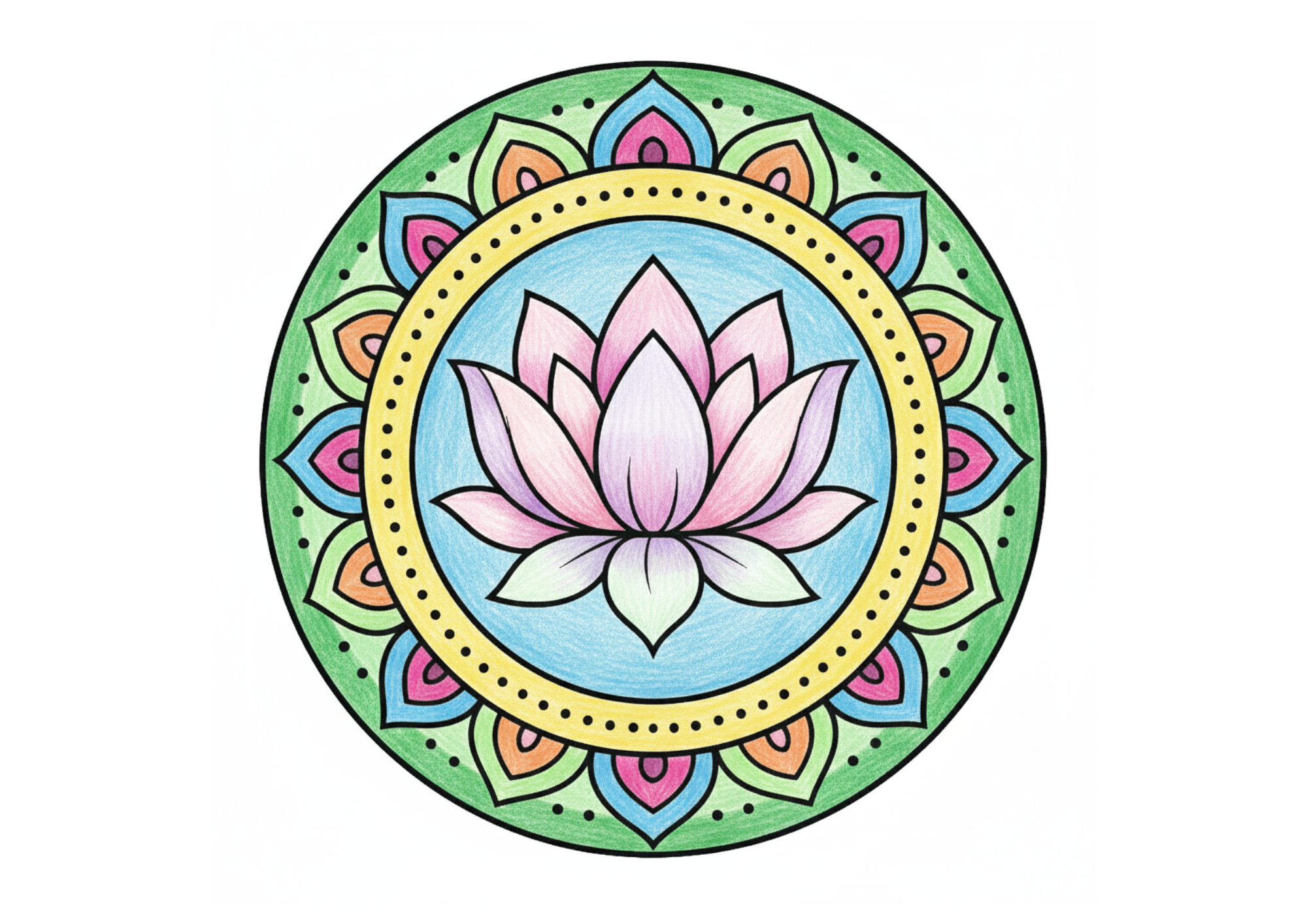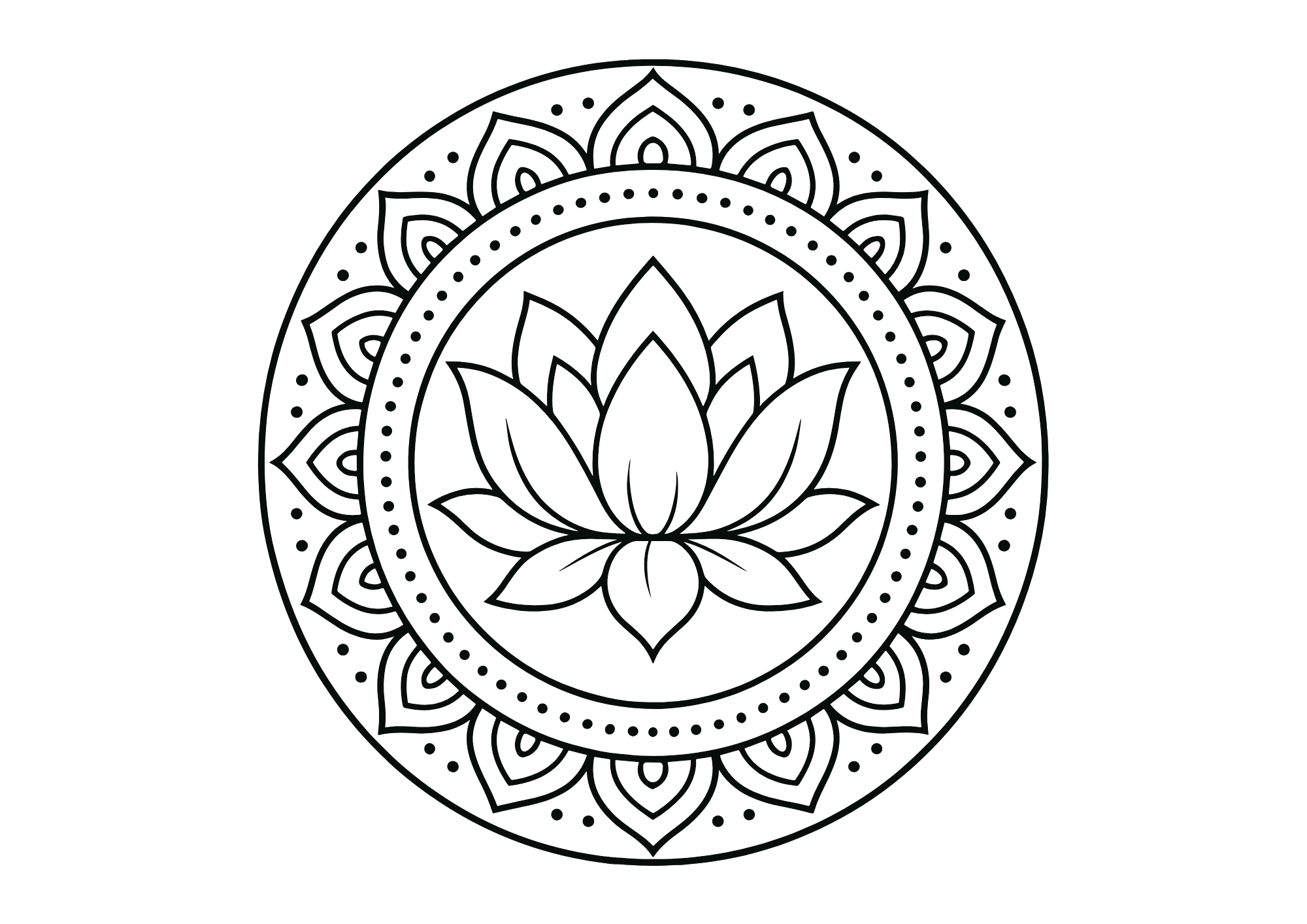 蓮の曼荼羅ぬりえ|心を整える簡単線画|高齢者向け無料ダウンロード