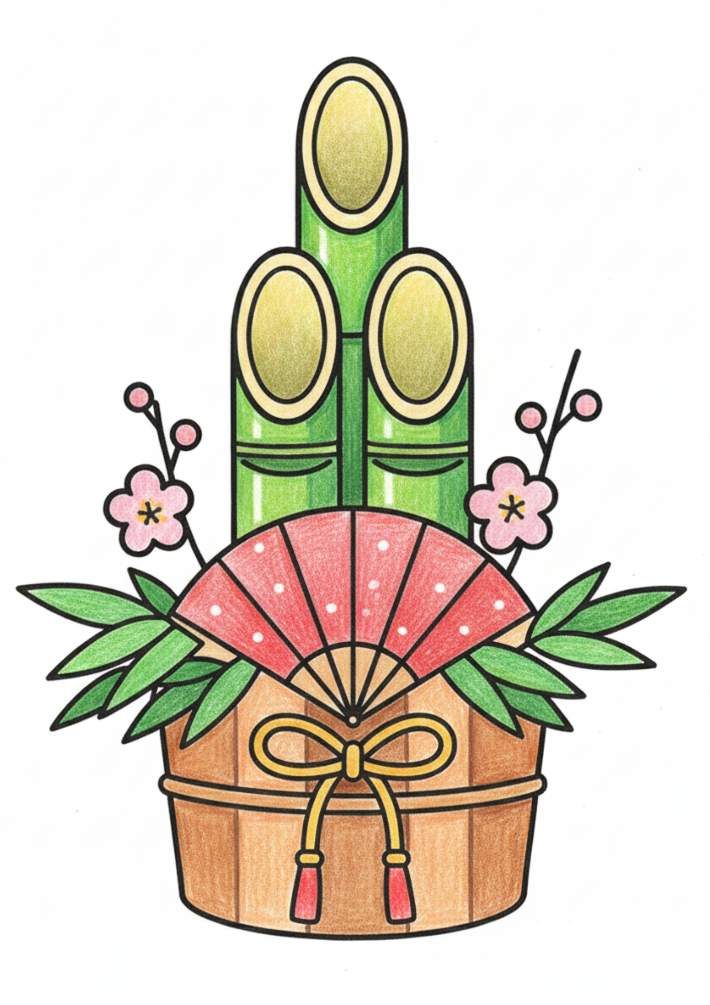 お正月の門松ぬりえ|季節を感じる和の飾り|高齢者向け無料ダウンロード