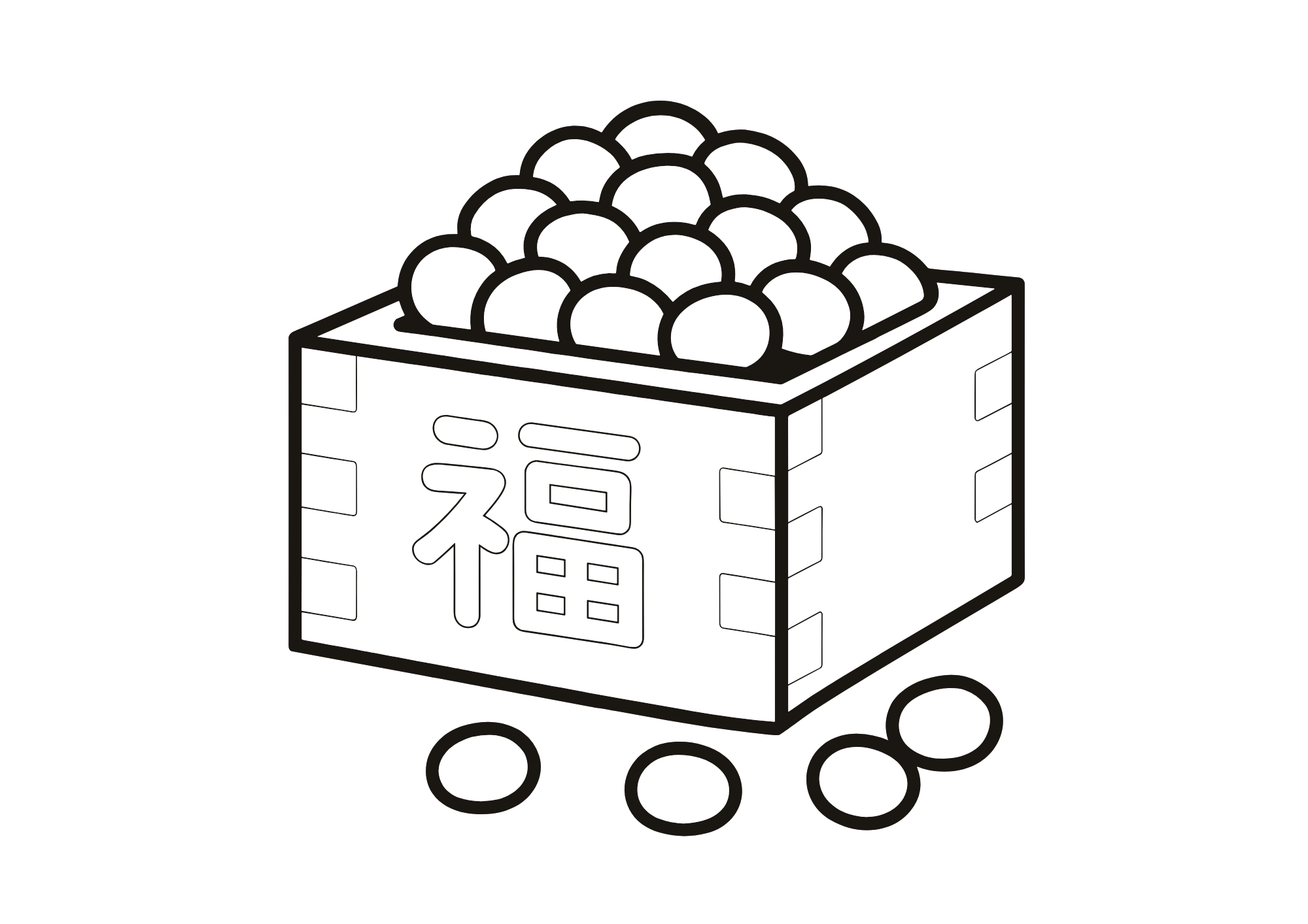 節分の豆まき升の無料ぬりえイラスト|幼児向け|簡単で塗りやすい|2月行事素材|ダウンロード