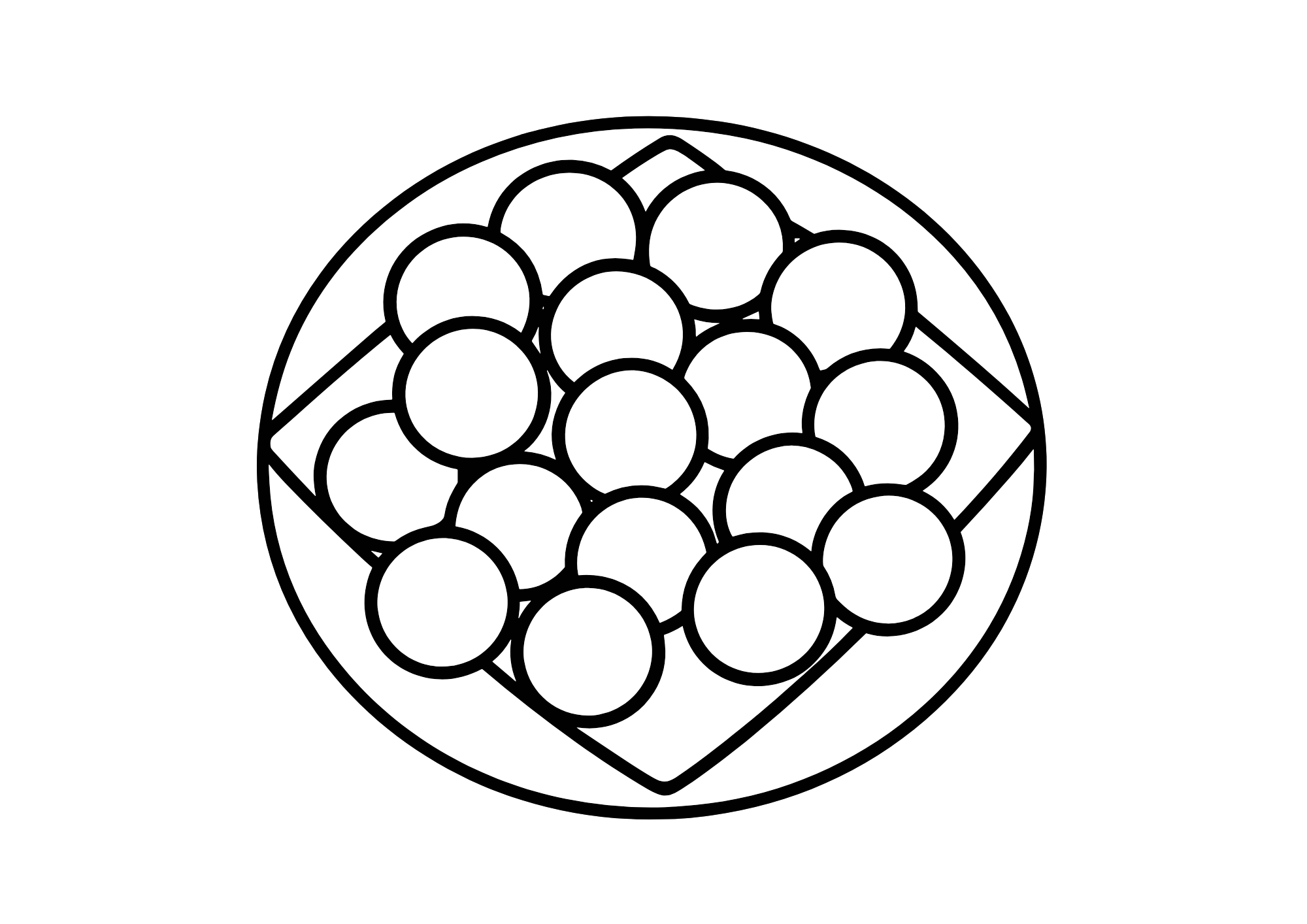 赤い丸皿に、白・ピンク・黄・緑・茶色などのカラフルな豆菓子がたっぷり盛られたぬりえイラストです。節分にちなんだ優しいデザインで、2〜6歳の未就学児が楽しく塗れるよう構成されています。保育園や幼稚園の行事・おたより・ぬりえあそびにおすすめです。