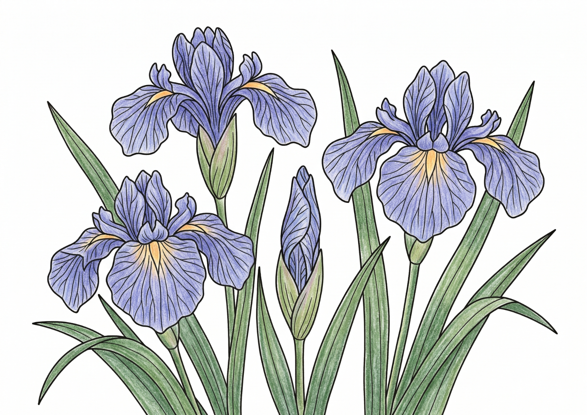 菖蒲(ショウブ・アヤメ)の塗り絵イラスト|大人・高齢者向け 無料ダウンロード(塗り絵フリー画像素材)